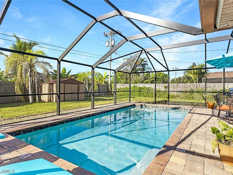 No flooding from Hurricane Ian! You won’t want to miss this TURN KEY 3 bed 2 bath POOL home located in the heart of Cape Coral! Your new home is on CITY water and CITY sewer with all assessment paid in FULL! Situated on an oversized triple fenced in lot, there is plenty of room to entertain guests on your patio or backyard! Features include solar panels to replace your electric bill, roof 2018, water heater 2018, NEW Pool heater and quartz countertops in kitchen with stainless steel appliances! Tucked away in a quiet neighborhood just minutes away from downtown Cape Coral and midpoint bridge give you easy access to nearby beaches as well! Great for investors to rent annually, AIRBNB or even a first-time home buyer! Book your showing today!