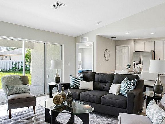 *Pre-Leasing* The home is currently tenant-occupied. PLEASE DO NOT DISTURB TENANTS! Welcome to your new home! Incredible opportunity to rent this newly built house in South Cape Coral and become its first tenant! This is a 4 bedroom, 2 bath single-family house in a quiet, cul-de-sac street with very friendly neighbors. The house is located near the intersection of Skyline Blvd and Veteran Memorial Pkwy. It is near a golf course and a minute from Home Depot, restaurants, convenient stores, and grocery stores. It is just about 15 minutes from Fort Meyers downtown. Best school district in the area, walking distance to Skyline Elementary School and Patriot Elementary School, 1.5 miles to Trafalgar Elementary School and 1 mile to Challenger Middle School and Cape Coral High School It is a spacious and luxury one-story home. Open floor plan with cathedral high ceilings and center island kitchen. Spacious living room leads to large covered lanai to enjoy the SW Florida lifestyle! Spacious kitchen with an island and plenty of counter space and a pantry. One large master bedroom with a full bathroom and two big walk-in closets, together with three other bedrooms, another full bath, a utility room, and a spacious attached two-car garage. Tons of cabinets and closets for storage! Features Include: Lenox 15 Seer high efficiency AC system, PGT Low E Insulated windows, 36" upper cabinets with soft close doors, Granite Counters in Kitchen and Bathrooms, brand new refrigerator, microwave, dishwasher and oven, colonial style raised panel doors, Electric garage door opener, 18" tile flooring in main living areas , Stone Accents on front elevation of the home, irrigation system, epoxy coated garage floors, upgraded to paver driveway. There is a washing room with big closet and washer-dryer hook-ups Note: THE HOUSE IS UNFURNISHED. PHOTOS ARE OF A SIMILAR PROPERTY BUILT BY THE SAME BUILDER WITH THE SAME FLOOR PLAN. PICTURES MAY NOT OF ACTUAL ADDRESS. PLEASE CONTACT US FOR A VIDEO WALKTHOUGH OR TO SCHEDULE A TOUR. WE DO NOT ADVERTISE ANY OF OUR HOMES ON CRAIGSLIST, WHICH IS LIKELY A FRAUD. PLEASE DO NOT MAKE ANY PAYMENT BEFORE VISITING THE HOUSE. - Renter pays credit check fee for each 18 and older - No smoking - Pets are welcome with a $450 non-refundable pet deposit and monthly pet fee. - Tenant pays all utilities and is responsible for lawn/garden care. - $350 admin fee due at move-in. Lease term: - 24 month lease: $2,749 - 12 month lease: $2,800