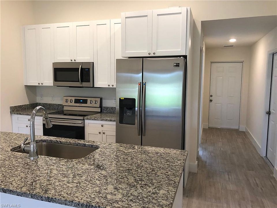 New Construction 3 bedrooms 2 baths, 2 car garage duplex in SW Cape Coral on a very quiet street. The unit is 1231 sqft living space with large granite island, gray tiled floors, white 42" shaker cabinets, hurricane impact windows, covered lanai, washer & dryer. NON-SMOKERS only NO PETS!! Tenants responsible to pay own utilities. Owner responsible for landscaping. Owner licensed Realtor!
