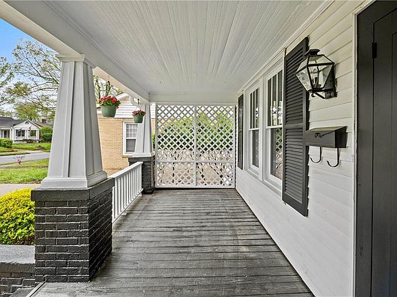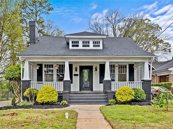ENJOY all the charm of an early 19thC Arts & Crafts bungalow with some needed modern touches inside. Wide welcoming front porch with new door, big original windows with vintage glass, tiled fireplaces, wood & tile flooring, wood columns and built-in shelving in the living room & parlor. Enhanced kitchen with new surfaces, appliances & flooring. BDs downstairs with a classic vintage-looking tiled bathroom. Upstairs-spacious living suite with new full bathroom-not all 7' & above. Downstairs side door leads to the driveway & backyard. One could easily build a wrap-around deck to the mostly fenced back yard--cleared and level. Plenty of room for a deck, patio or both, pets, playset, and gardening. Low maintenance landscaping. Great place to entertain downtown with nearby Lee St Theater & Railwalk Arts district, farmers market & coffee just a few blocks away. Close to fun Bell Tower events, dining, City & Hurley Parks, tennis & pickleball courts & hospital. Nice quiet street! 2 full baths.