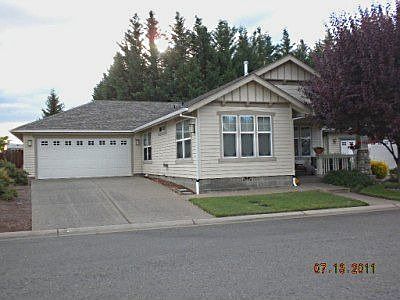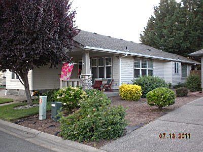 55+ community, beautifully maintained, quiet & desirable area.Quality, Jacoby built home, craftsman style subdivision. User friendly, 3 bedrm, 2 bath floor plan, 1318 sf, French doors on 3rd bdrm or den. Master bdrm with spacious walk in closet. Utility room includes laundry sink & washer/dryer with door to inside garage. Covered front porch, good sized kitchen with pullouts, pantry closet & dining area with slider to covered back patio. Wood doors & trim. Vaulted ceilings. Finished 2 car garage, extra parking. Shows pride of ownership with fresh interior paint & cleaned carpets. RV pkg located @ end of culdesac. HOA $53 per mo. Move in ready!