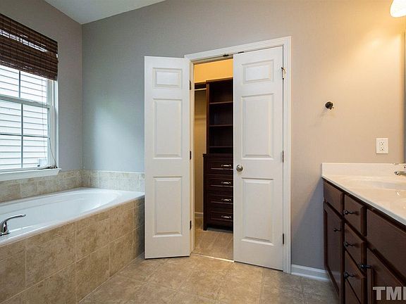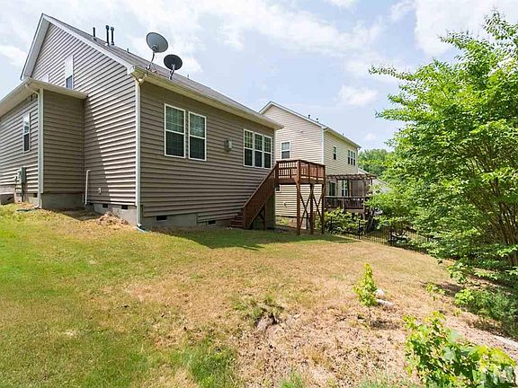 This Rolesville two-story cul-de-sac home offers a deck, hardwood flooring, a gas fireplace, stainless steel appliances, granite kitchen countertops, a loft, a den, and a two-car garage.