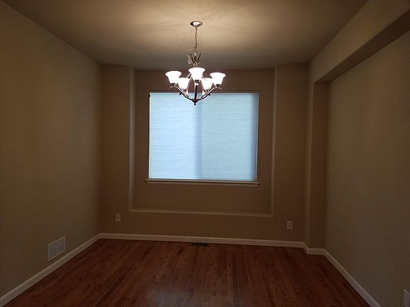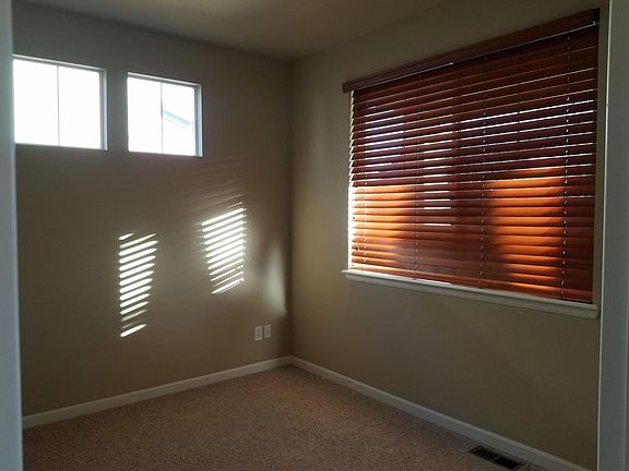 Open the front door to a grand entrance! High ceilings and lots of lighting, wood floors, lot of windows for natural lighting, closets everywhere for storage. Walk in to a large office, down the hall to a formal dining area, 1/2 bath, open laundry room with washer/dryer hook ups, folding table and storage, back to a LARGE kitchen and so many cabinets and nice appliances. Breakfast nook with built-in desk. Walk out to your open fenced backyard with green belt. Great for the summer enjoyment. Upstairs has a large master with walk-in closet, ceiling fan and en suite bathroom with soaking tub. 2 nice size bedrooms and a full bathroom and an open landing complete the upstairs. There is a full unfinished basement and the 2-car garage offers a surprise. There is a work area and storage room We are offering a short term lease to bring the home back to a summer availability. 3, 4, or 6 month lease offered. Tenant pays all utilities and maintains the yard. Security deposit is equal to the rent. No pets and no smoking. This home is located in the Thompson school district. www.facilitiesunlimited.com 1-year lease required. Tenant pays all utilities.