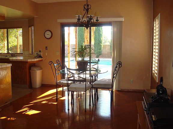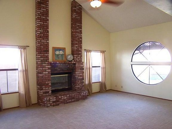ENAMORING 2-STORY WITH A POOL! Absolutely charming! Smartly decorated with trees and green in front. Home steps down into a spacious living room/dining area with a fireplace and a striking circular window overlooking the patio and pool. Pleasing kitchen with newer stainless/black full appliances, tile counters, and plenty of richly stained wood cabinets. Cozy and private entertainment/family room sports another classic fireplace with more than enough space for that special breakfast table! Upstairs sits a surprising master bedroom/bath suite with bay window that opens out into a fabulous wooden deck overlooking the backyard and pool. What a place for a private party! Two other upstairs bedrooms are spacious. Wrought iron gates and wide RV parking. Large storage shed in back. Pool, patio, and deck combination make this home an inviting choice. Two new AeroCool units to be installed! Located on the most beautiful culdasac in the city! RIDGECREST SUMMERS WILL NEVER BE THE SAME!
