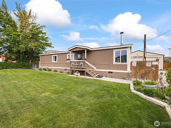Meticulously maintained 3 bed, 1.75 bath manufactured home with 1,404 sqft of open living space. Two insulated shops totaling 1888 sqft with power. One shop offers a cozy lounging area with a wood stove for the perfect retreat, while the other has room for your boat, RV, and work shop. Beautifully landscaped and fully fenced back yard offers privacy, a huge deck for entertaining & of course front row seats for hosting your own Friday night game nights cheering on the Brewster Bears. Located outside city limits w/ city water, irrigation & septic. Plenty of room for toys, tools & relaxation. Perfect for full-time living, a weekend getaway, or investment property. Close to the Columbia River, public boat launch & schools.