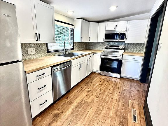 Renovated ranch home in the town of Kannapolis! New plumbing, electrical, and new gas line to the furnace. HVAC installed in 2024. This move-in-ready home features luxury vinyl plank flooring throughout, modern fixtures, and an open floor plan. The updated kitchen has fresh cabinets, stainless steel appliances, elegant butcher block countertops, and a glass backsplash. Enjoy your morning coffee on the deck that overlooks a huge backyard! The deep driveway and covered carport allows for plenty of parking.