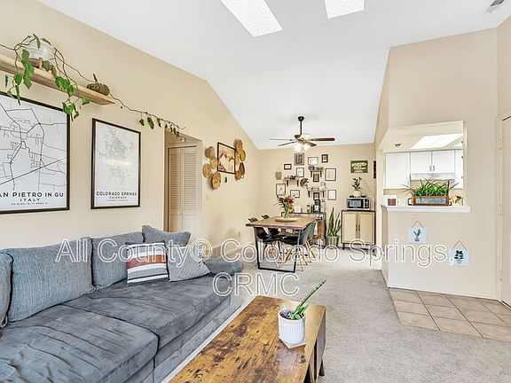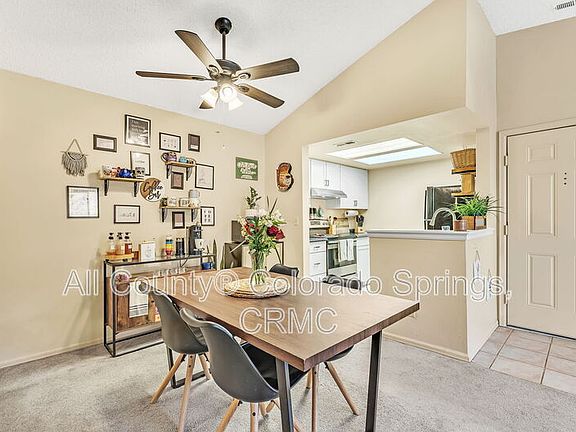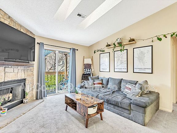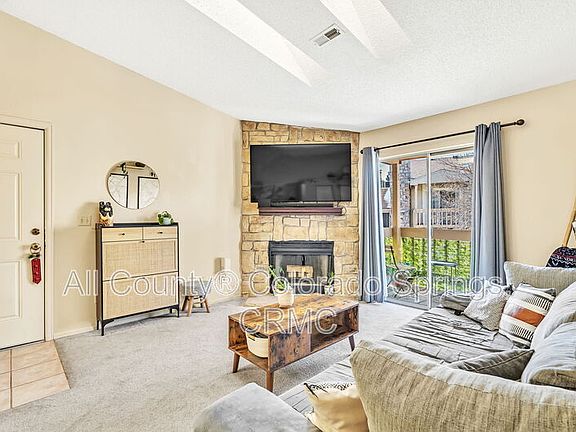 Mirage at Cheyenne Mountain 2 bedroom, 2 bath, 1 car garage condo. This home has newer carpet, paint & a remodeled kitchen with new countertops, cabinets, stove, electric range, stainless steel sink w/new kitchen faucet, new refrigerator, and a dishwasher. Very close proximity to restaurants, medical offices, shopping, hiking trails, and bus system. Both bathrooms have been updated with new freestanding vanities, faucets, new counter tops, new light fixtures that have auto lighting in each bathroom, and under kitchen cabinets. This cozy upper unit has vaulted ceilings, and skylights that bring in extra light. There is a stone wood burning fireplace & mantel. Living room area walks out onto a private deck. Primary bedroom has a walk-in closet with a private attached bath. Amenities included are central A/C, trash, and water included in rent, outside maintenance and private community pool. This unit has its own detached one car garage, and 1 registered parking space. Owner may consider up to 2 dogs, maximum 45 lbs each, with an additional pet deposit, pet admin fee, $35 monthly pet rent, and profile with Petscreening. Offered by All County Colorado Springs, CRMC. Call us today, or see more of our properties by visiting us online. Please note, if approved for this property, the longest we can hold off before starting a lease is two weeks from the ready date. *Renter's Insurance is required upon execution of lease. All County Colorado Springs provides coverage options with a 3rd party vendor. Inquire within for more details. Applicant has the right to provide All County Colorado Springs CRMC with a Portable Tenant Screening Report (PTSR) that is not more than 30 days old, as defined in 38-12-902(2.5), Colorado Revised Statutes; and 2) if Applicant provides All County Colorado Springs, CRMC with a PTSR, All County Colorado Springs CRMC is prohibited from: a) charging Applicant a rental application fee; or b) charging Applicant a fee for All County Colorado Springs, CRMC to access or use the PTSR.