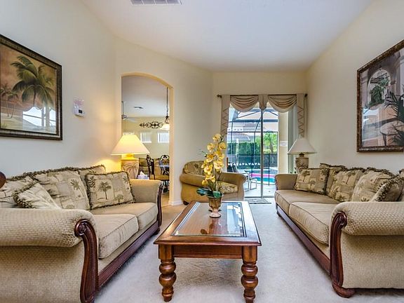OUTSTANDING 5 Bedroom 4 1/2 Bath Home in GATED COMMUNITY with TILE ROOF, SOUTH FACING Screened HEATED POOL and SPA with POOL Half Bath! Let someone else pay for your VACATION HOME - Over $10,000 in Bookings can transfer at closing! Great OPEN CONCEPT FLEXIBLE Floor Plan - Impressive Entry with Spacious Living Room, Dining Room and DEN with Double Doors (Possible 6th Bedroom.) GOURMET KITCHEN with RAISED PANEL Cabinets, LONG BREAKFAST BAR and Lots of STORAGE! Oversized Family Room (21x14) overlooks LARGE COVERED PATIO and Screened POOL & SPA! First Floor MASTER with SLIDERS to Patio and Master Bath features GARDEN TUB, Large Shower and DOUBLE SINKS. Upstairs is LOFT AREA, plus Bedroom 3 with PRIVATE BATH and Bedrooms 2, 4 and 5 that share Bath 4! Great Property with LOW HOA in Prime location near DISNEY, 429 and I-4! Community features Clubhouse, Fitness Center, Tennis Courts and Park.