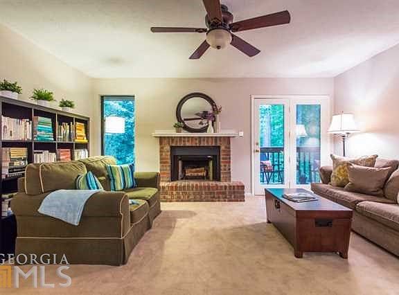 Nestled within the gated homes of Tuxworth Springs, the forest facing, top floor, corner home features a large living room with masonry fireplace flanked by lush, green views. The separate diding room adjacent to the kitchen with large pantry look out to the living area for the perfect open floor plan. This large, roommate floor-plan includes 2 large bedrooms, each with full-bathrooms and walk-in closets. The beautiful outdoor space overlooks abundant woods and a green lawn. The covered deck offers plenty of room to relax & includes a large storage closet.