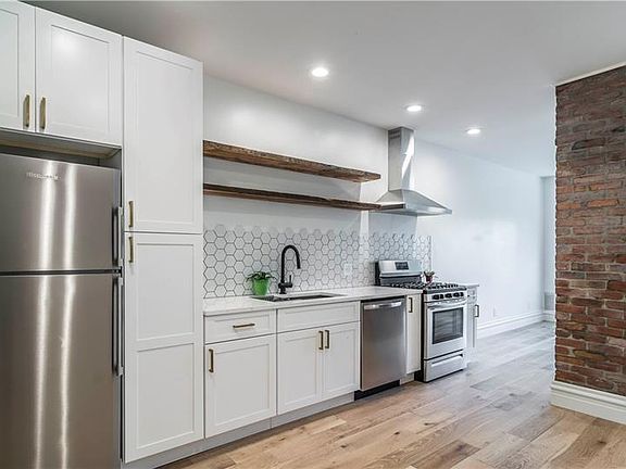 Gorgeous, completely renovated Northside row house in Pittsburgh's Spring Hill City View neighborhood. Great view of Pittsburgh skyline looking down the street! 1st floor bedroom with large closet and beautiful built-ins would make a wonderful home office. Second floor boasts a full bathroom and open concept living room, kitchen, and dining. Quartz counter tops, stainless appliances, soft close cabinets, gold cabinet pulls, rustic wood shelving and a central, exposed brick chimney make the kitchen a designer's dream. Two nice-sized bedrooms with large closets on third floor with another full bathroom. THIRD FLOOR LAUNDRY! Custom-built vanities in both bathrooms add to the rustic modern flair. Deck off third floor back bedroom allows for low maintenance outdoor living. New roof, new hot water tank, new furnace, new central AC, updated front siding, all new windows, updated electric and plumbing. EASY access to 376, 279, 28, Downtown, Strip District, Lawrenceville. Ready to call home!