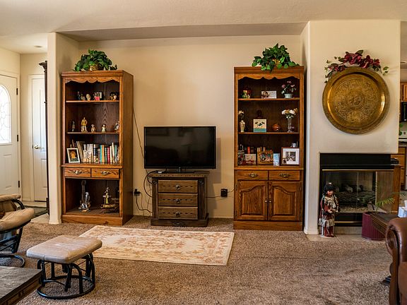 Just what you've been looking for! Single level split floor plan 3bd/2ba with dbl attached garage plus gated RV parking . Home features vaulted ceiling ; open living area, dining area boasting hardwood floor, corner gas fireplace, plant shelves; Arched windows & Arcadia doors existing to front and back patio areas. Kitchen has plenty of cabinets, breakfast bar, walk-in pantry & all appliances convey. Tile, wood and carpet flooring, Master bdm Suite has walk in closet, dbl vanity & shower. Main bath has jetted tub. Wooden gate, & concrete pad for RV parking, wood utility shed, some deco fencing, landscaped with vegetation, shrubs & mature trees. Call L.O. for an app't.
