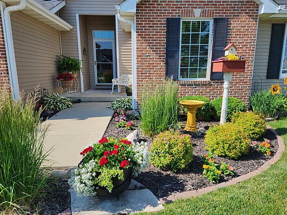 Pride of ownership in this custom built townhome! Move-in ready from the outside to the inside. Enjoy townhome living in this 2 bedroom, 2 bath 1344sf ranch style home. Thoughtful home design and perfectly paired colors throughout makes this an elevated choice. Impeccable landscaping from the front yard to the private backyard. Large living space with gas fireplace and built-in hutch. Efficient kitchen with a breakfast bar, pantry cabinet, stainless steel appliances. 1st floor primary suite features a large bedroom, bath with double vanity, beautiful tile shower and large walk-in closet. Door off the dining area leads to the amazing backyard. The backyard features maintenance free deck, large patio, mature trees/landscaping - perfect for entertaining.