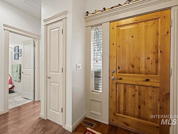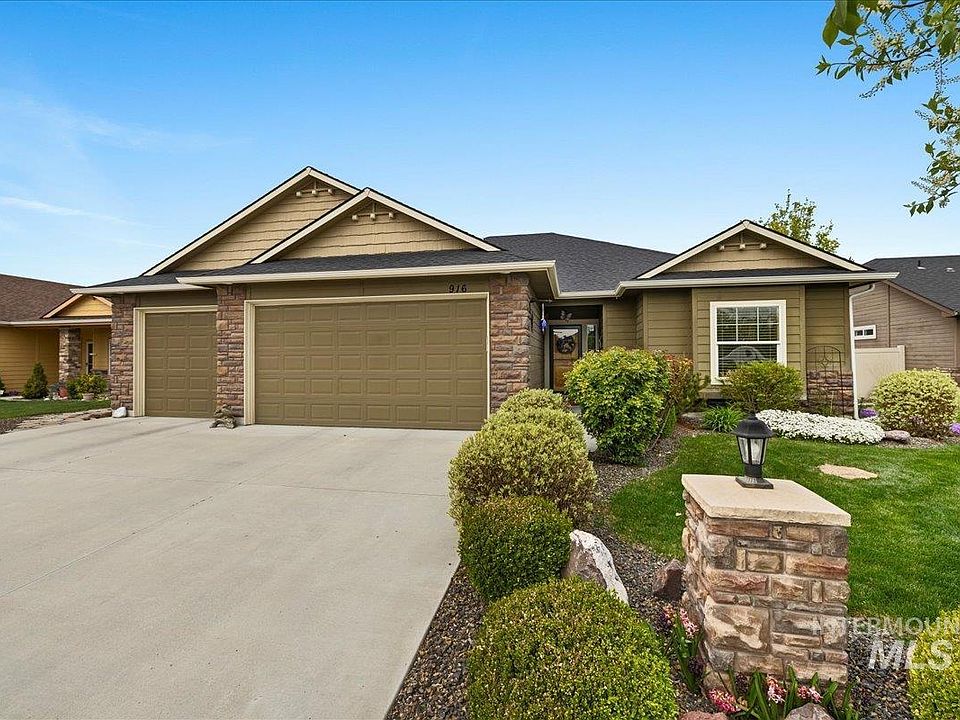 Explore this custom single-level home nestled in Dallan Woods, boasting community pool, playground and walking paths. No detail has been overlooked, from the split-bedroom layout to the soaring 9-foot ceilings, HERS rating for energy efficiency and finished garage. Revel in the luxury of engineered hardwood floors, NEW carpet in all bedrooms, and granite counters throughout. As you enter through the solid alder front door, you're greeted by the open living area w/corner gas fireplace, while the kitchen dazzles w/knotty alder cabinetry, island/breakfast bar, tile backsplash, stainless steel appliances & corner pantry. Primary suite offers a retreat w/an oversized walk-in closet, dual vanity, framed mirror, spacious tub w/tile surround, & separate walk-in shower. North-facing covered back patio with a gas outlet ready for your BBQ gatherings. Meticulously landscaped private yard features lush greenery, curbing, shed, and garden space. Experience pride of homeownership & make this exceptional residence your own.