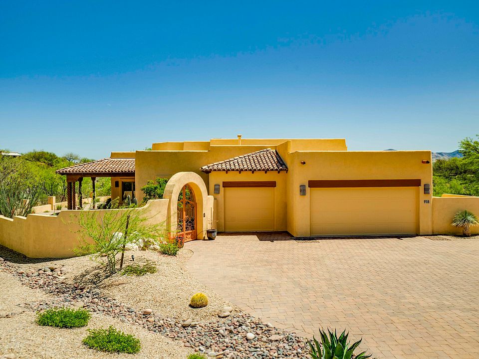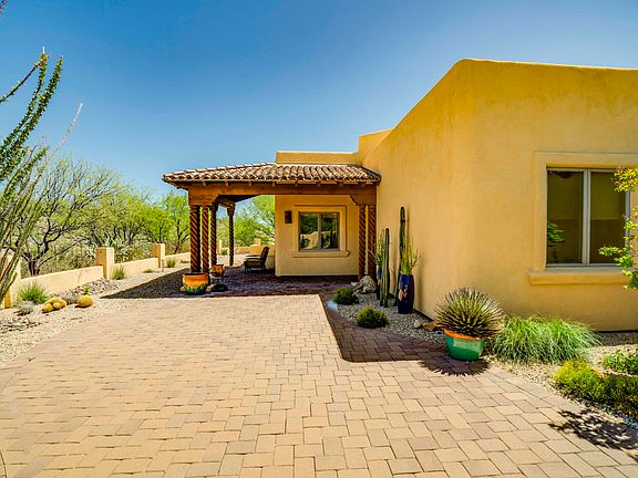 From the moment you enter through the courtyard gates you will be amazed by everything you see! This home is perched on a unique lot with remarkable views in all directions. Enter through the solid wood door and you'll find spatial elegance where a wall of glass in the great room takes center stage and a corner Kiva style fireplace adds a flare of southwest living. The traditional dining room displays ornate post and beam decor and a classic recessed ceiling and chandelier. You've finally found your dream kitchen with dazzling granite countertops, a large prep-cook island, stainless appliances including double ovens, ornate wood posts and Vega beams overhead. A convenient eating nook is tucked within bay windows displaying terrific views. Your huge master bedroom suite gives you a quiet sitting area with bay window views plus a garden door providing direct access to the covered patio. Spoil yourself in luxury in this immense master bath with separate "his and hers" granite covered vanities, custom lighting fixtures, framed mirrors and a curved glass block shower. Catch up on your reading in the den with electric fireplace, media center and built in bookshelves. Step outside where the outdoor living spaces are just as incredible! Sitting on a 1.6 acre lot that is like your own island you will have panoramic views from several sitting areas - choose from the north patio; the covered east patio or the south patio which has oversized glass panels for terrific viewing! And the 6KW Solar system will keep electrical costs to a minimum. An absolutely incredible property!