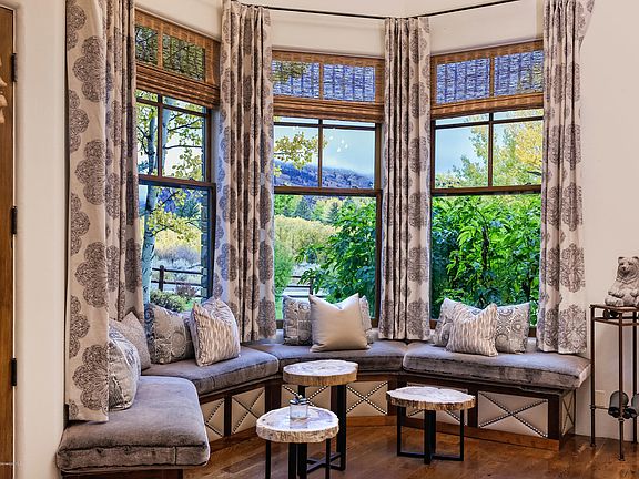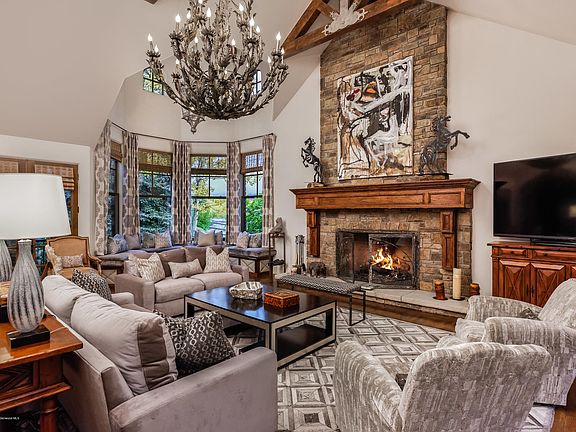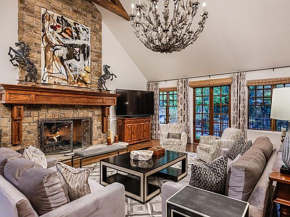 Dramatic and immaculately maintained three level home in the West End is walking distance to the Music tent or 3 blocks to the shuttle route. The amenities and thoughtful design at this home are almost too many to list. There are five generous bedroom suites and a gym. The home is ideal for entertaining winter or summer; Summer time brings beautifully landscaped gardens surrounding the stone patio with its gas fire pit and Jacuzzi. Large, stand behind bar combines living and kitchen areas. Master suite has 2-sided gas fire place, sunny deck ideal for morning coffee or a glass of champagne, walk-in closet.