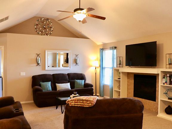 New carpet & tile in this 3 bedroom, 2 full bath home in Nixa near Espy Elementary. The home has an open floor plan with split master bedroom. The living room has vaulted ceiling, gas fireplace, and built-in shelving. The kitchen and dining room include new tile flooring, breakfast bar and appliances. The yard is fully privacy fenced and has a new patio that is great for entertaining.