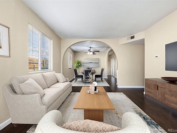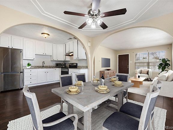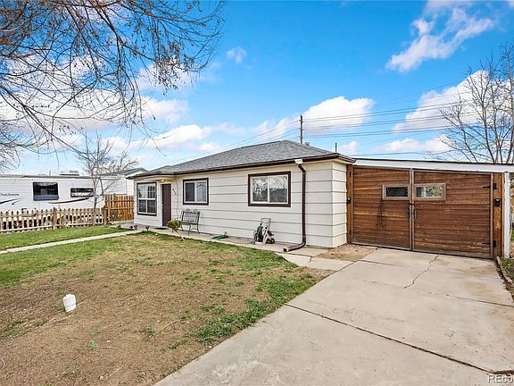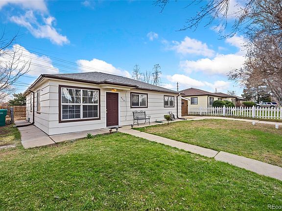Welcome to this charming ranch home nestled in the desirable Hoffman Heights neighborhood of Aurora. Boasting a picturesque white picket fence and mature trees, this residence exudes timeless appeal. Step onto the welcoming front porch and envision relaxing evenings watching the sunset. The tranquil surroundings of Hoffman Heights offer a quiet retreat with minimal traffic. Inside, the great open layout seamlessly connects the living room and dining room, creating an inviting space for gatherings and everyday living. Durable laminate wood floors and arched entryways add character and charm throughout. The modern kitchen is a chef's delight, featuring ample white cabinetry, granite countertops, stainless steel appliances, and a pretty new tile backsplash installed just last month. Conveniently located off the kitchen, the large laundry room offers plenty of storage and provides access to the expansive covered patio and backyard, perfect for outdoor entertaining and relaxation. This home offers three bedrooms, with the primary bedroom boasting a private half bath for added convenience. A modern full bathroom serves the additional bedrooms and guests. Parking is a breeze with a closed carport for one vehicle and space for two more small vehicles in the driveway. The unique feature of this property is its well-fenced perimeter, providing safety and privacy for residents. The major highlight of this home is the new AC unit, ensuring comfort during hot summer days—a rarity in the area. The abundance of natural sunlight makes this home a haven for plants and gardening enthusiasts. The expansive backyard offers ample space for play and the opportunity to host large celebrations, with a deck as an added bonus. Located in a superb location, residents enjoy easy access to amenities such as Children's Hospital, just a 2-minute walk away, nearby bus stops, shopping areas within 0.2 miles, public schools within a 5-minute walk, and a nearby fire station. Welcome home!