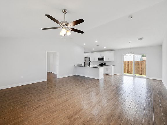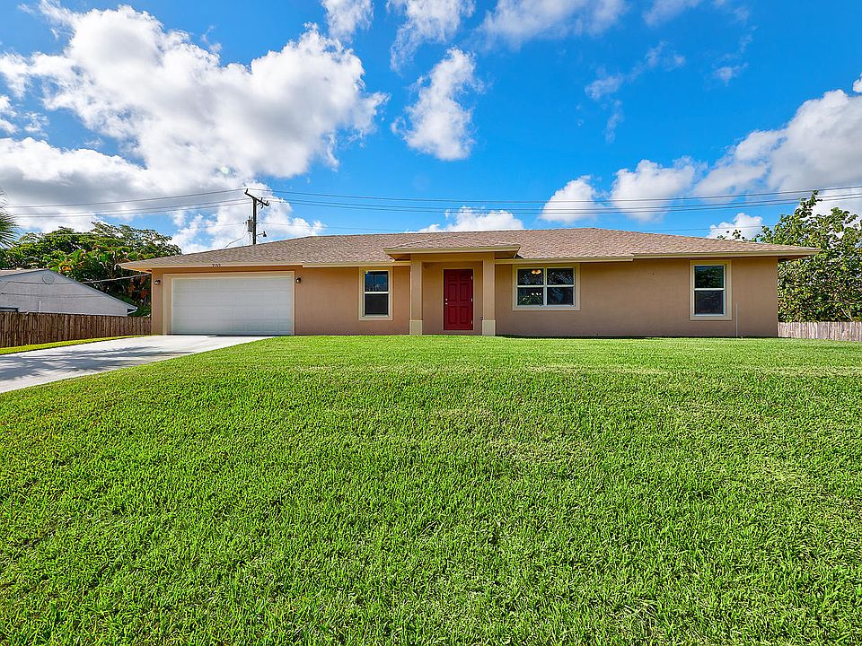 Welcome to this NEVER LIVED IN, BRAND NEW CONSTRUCTION 3 bedroom, 2 bathroom, 2 car garage home-on an elevated lot. Bring the boat, bring the RV because it is located on almost a 1/4 of an acre, without an HOA! The driveway is huge and a brand new fence was installed in the back yard. The open concept inside is light and airy, featuring a beautiful kitchen with top of the line stainless steel appliances, wood cabinets, marble counter tops, and adjacent dining area. The freshly painted walls, tiled floors throughout, and modern bathrooms make this home move-in ready. Hurricane prep in your new home will also be a breeze, because the structure is CBS, and ALL windows and doors are hurricane impact!