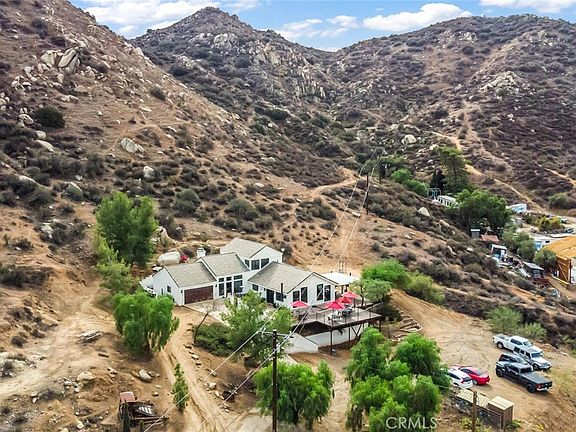 Beautiful turnkey custom built home tucked away in the hills of Reche Canyon. Updated and upgraded throughout! Come surround yourself with country atmosphere and serenity at it's finest. The entry that opens to a large foyer; showcasing the beginning of an impeccable maintained home with attention to detail. The foyer opens to the living room. Come relax and enjoy the beautiful fireplace on those cozy fall evenings. The room is freshly painted with recessed lighting and leads to the backyard and down to the Beautiful Country kitchen. It has new state of the art appliances, granite countertops, rustic range hood over the stove top and plenty of cabinets. To add to that; is a kitchen bar with plenty of seating that leads to the dining area. The large dining area has plenty of room for gatherings. You will enjoy the warmth from the cast iron wood burning stove on those cold days or evenings. Notice the large patio that family and friends will enjoy creating new memories. Perfect for big Celebrations!