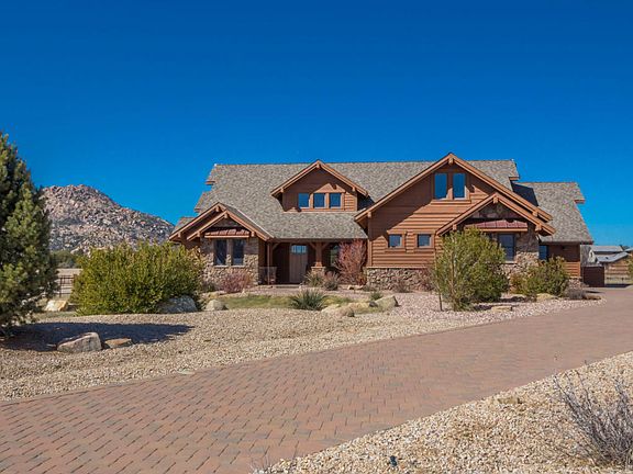 MOTIVATED SELLER...Now priced below what you could build this immaculate custom home located in Prescott's premier gated community. Dramatic views of Granite Mtn, designed for comfortable everyday living on the main level, with the flexibility to host extended family (or in-law setup) with the bonus space on the upper level. Quality finishes & attention to detail throughout w/features that include African Mahogany cabinets, post/beam ceilings, walnut wood flrs & copper quartz flooring, Bosch & Wolf appliances, granite slab counters/breakfast bar. The main level has a great room floorplan w/stone fireplace, formal dining, eat-in kitchen, office, master suite plus 2 private guest suites w/en-suite baths, laundry rm & storage galore.