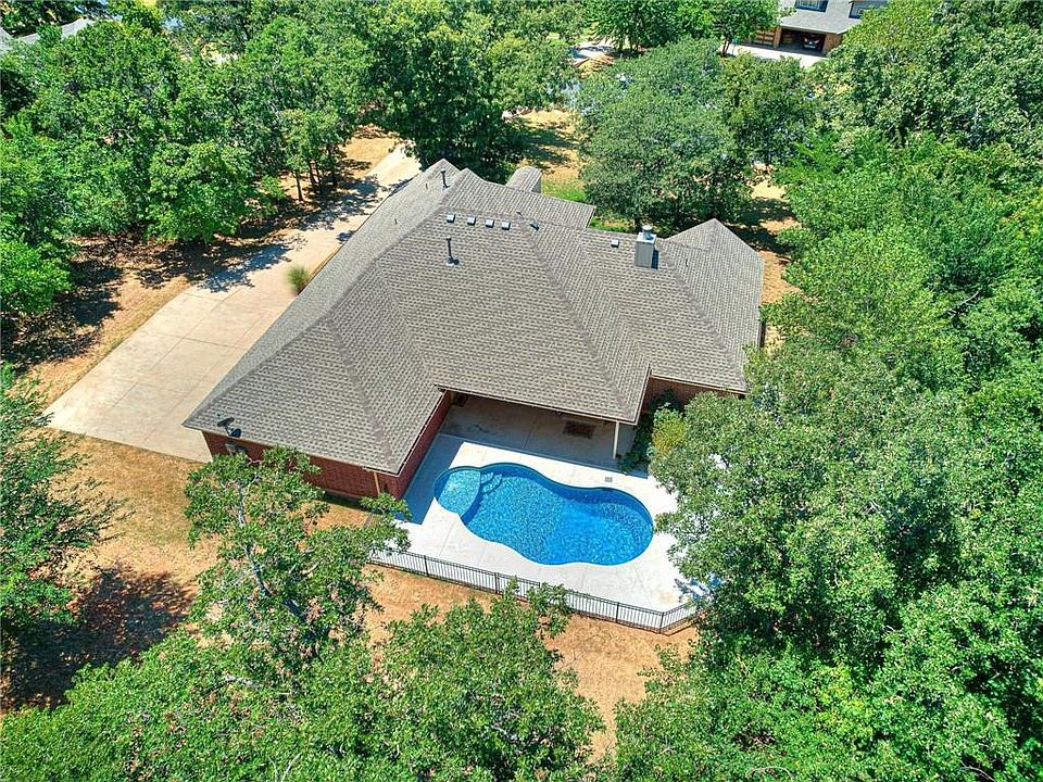 **SWIMMING POOL | 1 ACRE LOT | TALL TREES | GREAT LOCATION** There is much to love about this custom, one-owner home! Enjoy the amazing tree canopy with privacy on all sides. The Saltwater Swimming Pool was built in 2021 and is practically new. The pool area is enclosed in a black wrought-iron-style fence and includes a large covered patio & textured concrete pool deck. Inside - there is attractive and durable flooring made of vinyl plank & porcelain tile throughout the house (The only carpet is in guest rooms & closet). The living room has a towering 14 ft vaulted ceiling with wood beam, wood burning fireplace and large arch-top windows. The kitchen features stainless steel appliances, a full size pantry and 2 breakfast bars facing both the living room & dining area. The luxurious primary suite has a bay window, tray ceiling and spa bathroom with jetted tub. Call today for the full features list and aerial lot photo!