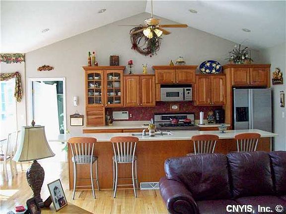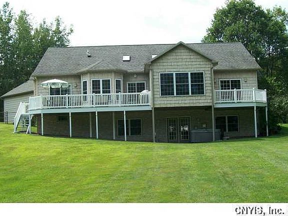 Fantastic 6.75 acre estate located along the Oswego River. Features include 9' ceilings, guest suite, master bedroom suite, year round Florida room, great room & kitchen with vaulted ceilings, full finished walkout basement with wet bar, game room, gas fireplace, bedroom and full bath adds another 1000 sf of living space, first floor laundry and more. Spectacular River views from the kitchen, Florida room, great room, guest suite and master suite. Sale includes dock and hoist. No flood insurance required.