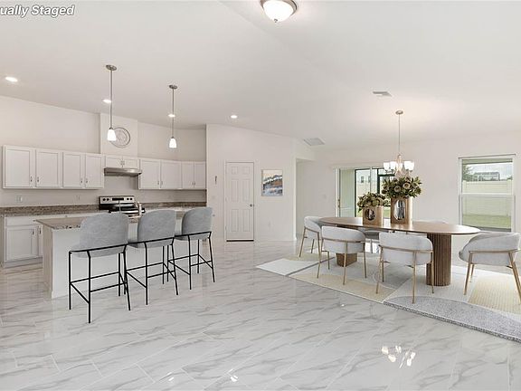 One or more photo(s) has been virtually staged. Welcome to this stunning 3-bedroom, 2-bathroom home in the sought-after Bellaviva community. Offering 1,666 square feet of thoughtfully designed living space, this residence blends style, comfort, and convenience. Beautiful porcelain tile and luxury vinyl plank flooring flow seamlessly throughout the home, complementing the open floorplan. The kitchen is a chef’s delight, featuring stainless steel appliances, a reverse osmosis system under the sink, and a center island that overlooks the spacious, light-filled living room. This layout is perfect for both everyday living and entertaining. The primary suite offers a peaceful retreat with a walk-in closet and a spa-like en suite bathroom, complete with dual sinks and a walk-in glass shower. Two additional bedrooms provide ample space for family, guests, or a home office. Step outside to the screened-in lanai and enjoy views of the large, fully fenced backyard. It is ideal for outdoor dining, gardening, or simply relaxing. Bellaviva residents enjoy a low HOA and access to fantastic community amenities, including a clubhouse, pool, and park. The location is unbeatable, just minutes from Champions Gate golf courses, a variety of shopping and dining options, and world-famous attractions like Walt Disney World. Downtown Orlando is also within easy reach, making this home perfectly positioned for both leisure and convenience. Move-in ready and beautifully maintained, this Bellaviva gem is ready to welcome its next owner.