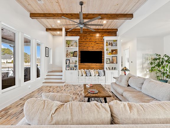 STUNNING CRAFTSMAN HOME ON 2.13 ACRES WITH A POOL AND IN GATED COMMUNITY! The experience begins with an expansive covered front porch that welcomes you into a bright foyer and spacious living room with that has wood detailing, built-ins, and a cozy bench. The open kitchen features a large island, walk-in pantry, and a counter-to-ceiling window opening to the pool bar. Behind the kitchen you will find a unique butler’s prep area with wine station, sink, and ample room for small appliances, as well as a designated office with a built in desk! The main-level primary suite includes a double vanity, custom tile shower, soaking tub, and walk-in closet. A sunroom off the patio with wet bar and half bath is perfect for those pool parties. The main level also has a guest bedroom with en-suite bath, while upstairs offers additional bedrooms and two bonus areas. Enjoy the flat lot with covered back porch, saltwater pool, and fenced area! Note: The lawn has been digitally enhanced for photography purposes to showcase its full potential.