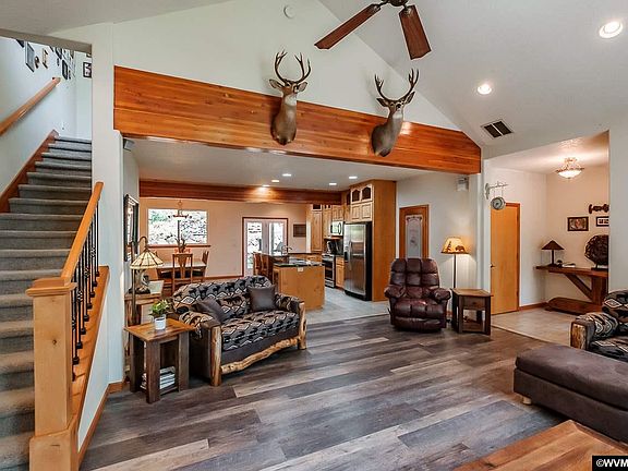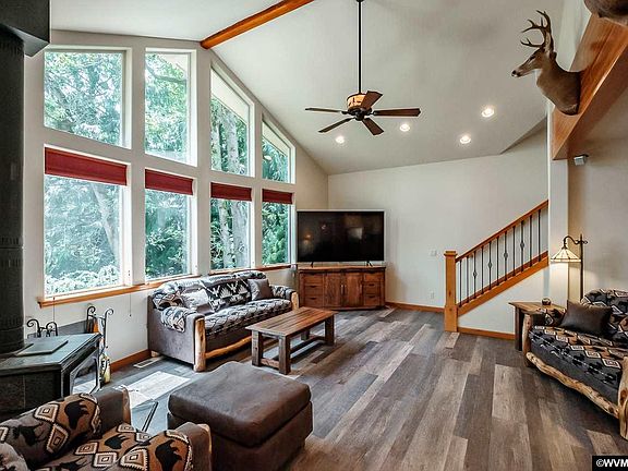 Accepted Offer with Contingencies. LOVE WHERE YOU LIVE Here in this Stunning Home Privately Nestled Amidst the Trees & Picturesque Views. Spacious & Open Concept Floor Plan with Towering Ceilings & Tons of Windows Throughout keep this Home Light, Bright & Perfect for Entertaining. Private Master Suite Located on the Main Floor Opens Up to Trex-Like Deck & Enchanting Waterfall Feature. Huge Bonus Room with Bathroom Ready For Your Ideas! 2 Insulated Shops, Plenty of Space to Roam & SO MUCH MORE! Easy 10 min Commute to Salem. Call Now To View!