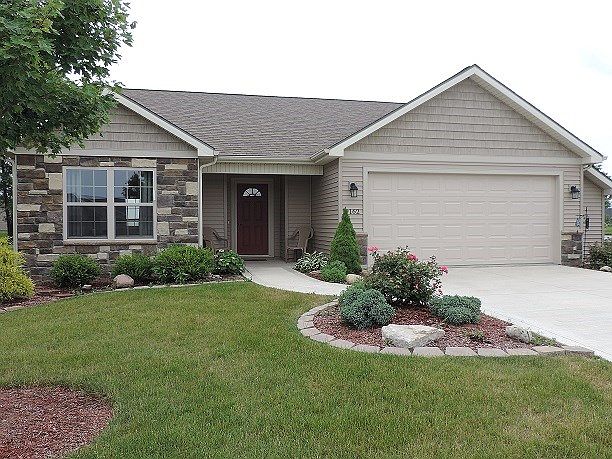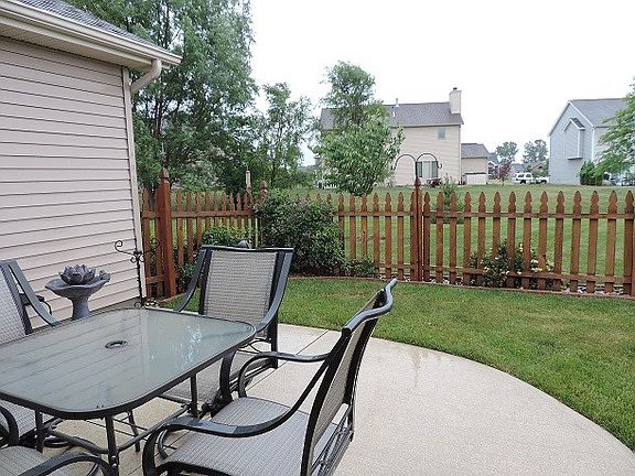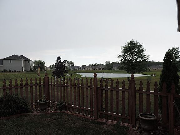 Solid well kept 3 bedroom, 2 full bath ranch, built by Sky Hill homes. Only 4 years old! Great floor plan offers separation for the large master suite with walk in closet. The second bedroom has a vaulted ceiling and plenty of room. Enjoy the brick gas log fireplace in the large great room with vaulted ceilings and open to the large eat-in kitchen with beautiful ceramic tile floors. Plenty of counters and storage in the kitchen with a pantry. You will find the main floor laundry quite handy. Also, the washer and dryer stay with the home, as does all the kitchen appliances! The back yard is very inviting with a wood picket fence surrounding the patio. The SunSetter awning will keep you in the shade as you admire the beautiful landscaping and view of the pond.