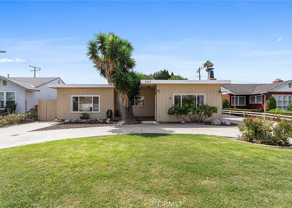 This beautiful 3-bedroom home in Garden Grove has plenty of character! Large lot with an option for an ADU in the backyard! Front yard with 2 parking areas and a single car garage. Upon entering the home, you will find light vinyl plank flooring in the large living room with a wood burning fireplace. The kitchen has snow white cabinets with lovely granite countertops. The laundry area is located just off the kitchen and has plenty of cabinet space for storage. Bathroom has been remodeled a few years ago with a newer tub and chic tile surround, modern navy-blue vanity, and custom shelving. The backyard is a great space for entertaining with a covered patio. Conveniently located near restaurants, school, shopping centers etc. Close access to the 22 freeway as well! Do not miss out on the opportunity!