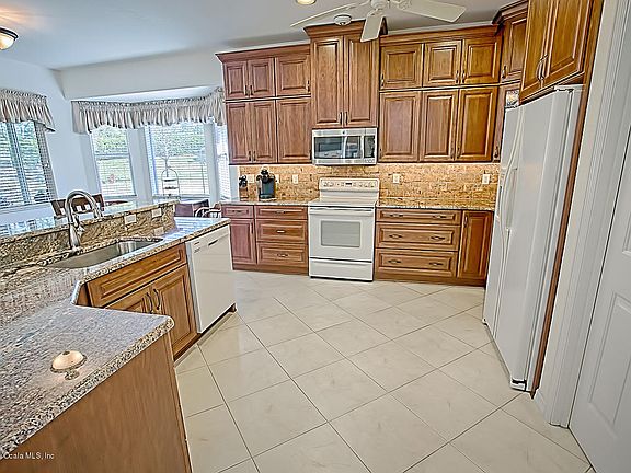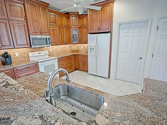 WOW! Great private lot; room for a pool or birdcage. Designer leaded entry door. Entirely re-done Kitchen; cherry two tier soft close doors/drawers & computer niche (off kitchen); granite counters, breakfast bar, closet pantry & ambient lighting. Bay windows in breakfast nook & master bedroom. Ensuite bath & professionally upgraded walk-in closet w. solid shelves/shoe shelves in master bedroom. Valances in bedrooms do not convey. GAS fireplace w. built-ins. Ceramic tile in heavy traffic areas. Enclosed lanai w. knee-wall, acrylic windows & river rock flooring. Ext. 2 -car garage plus golf cart garage w. remote sectional door, painted floor, attic storage, key-less entry, service door & storage; workbench & cabinetry do not convey. Newer HVAC (2009). Exterior painted in 2016. Make it yours!