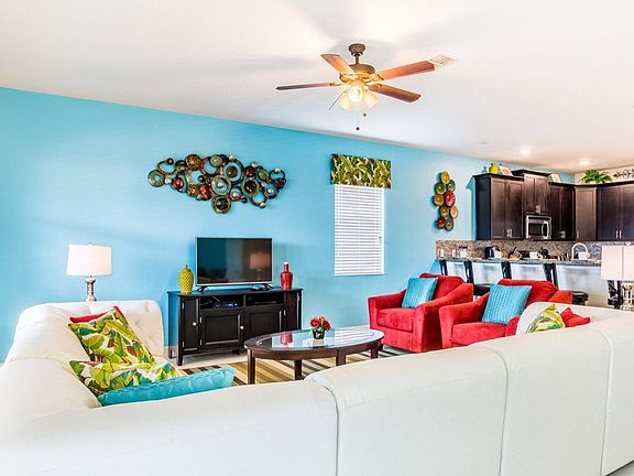 Welcome to this spacious 8-bedroom, 5-bathroom vacation pool home located in the prestigious ChampionsGate Resort. This private retreat offers a perfect base for families to explore Central Florida's attractions, including being just 10 miles from Disney World. The home features a private south-facing pool with a spa, a game room with a pool table and air hockey, and a theater room. The fully equipped kitchen offers seating for 12 at the dining table and 5 at the breakfast counter, making it ideal for large gatherings. This home is designed for comfort and entertainment, featuring a private pool with a spa, a game room with a pool table and air hockey, and a theater room. The fully equipped kitchen is perfect for preparing meals, with ample seating for family and friends. Optional pool and spa heating is available for an additional charge of $30 per day plus tax. The resort allows a maximum of 5 cars or 3 large passenger vans, with additional parking available for visitors. Additional rental items such as BBQs, cribs, pack-n-plays, strollers, and high chairs are available for rent. Located in the gated community of ChampionsGate Resort, this home offers access to two clubhouses, including the nearby Oasis Clubhouse, just a 2-minute drive or 9-minute walk away. Enjoy resort-style amenities such as a huge pool with cabanas, a water slide, a lazy river, a children's splash park, a fitness center, a movie theater, and more. The property is conveniently situated 10 miles from Walt Disney World, 21 miles from Universal Studios, and 18 miles from SeaWorld. Shopping and dining options are also nearby, with Publix Supermarket just 2 miles away. The property is smoke-free and pet-free for your comfort. Complimentary WiFi and on-site parking are included. Towels and linens are provided, and a starter welcome packet is supplied with basic necessities. Guests are responsible for replenishing supplies beyond the starter kit. Check-in is streamlined with online email check-in, and 24/7 on-call maintenance is available. The resort enforces parking rules, and fines may apply for violations.