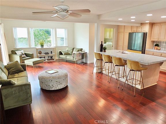 9163 Ethel Street … a 4 bedroom 2 bathroom home of captivating style and spaciousness quietly set on a quiet cul-de-sac in Cypress boasting central A/C, exquisite floors, dramatic lighting and incredible quality. A garden approach and double doors open to the reception foyer… extending to to an expansive great room including a large family room opening to the patio and an open kitchen featuring great storage, a huge island, greenhouse window, laundry room access plus a pass thru an opening to the sun-filled and fireside dining and living room. The guest bathroom with 2 sinks and a shower/tub and a linen center with folding shelf are central to the bedroom wing. Each of the bedrooms are distinctive… each with dramatic lighting and beautiful floors (2 with mirrored wardrobe doors, 1 featuring 2 amazing garden windows). The primary suite is lovely with its sliding glass doors to the grounds, 2 wardrobe closets plus a private bathroom with a shower. Serene and charming, the rear patio is naturally secluded by a virtual orchard including 2 avocado trees, 2 orange trees, a grapefruit, a lemon and a mandarin orange tree. A home of style, character and visual freedom tucked away in Cypress.