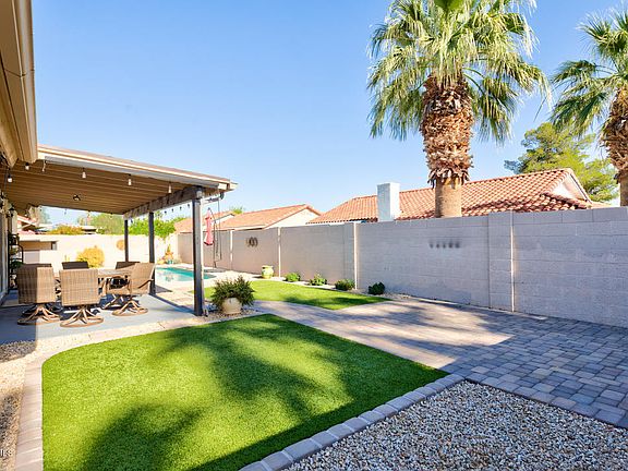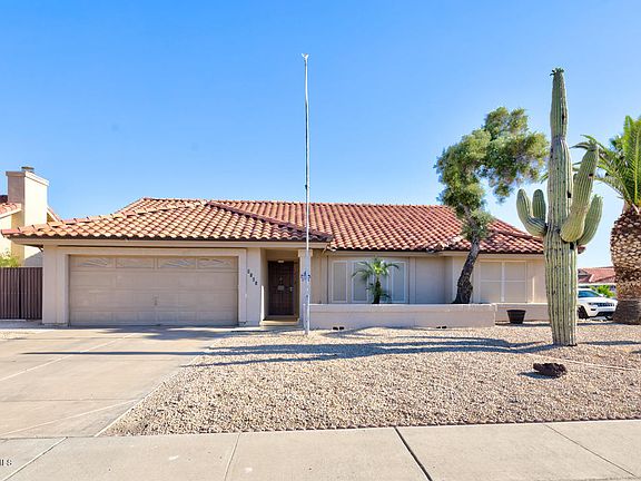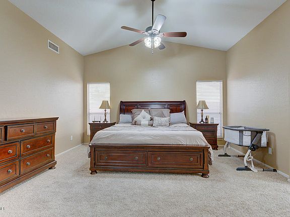 If you are looking for a meticulously maintained, move-in ready home nestled in the highly sought after Desert Harbors community than look no further. Throughout this single level, corner lot home you will notice the neutral paint colors, abundance of natural light, and vaulted ceilings. Stepping inside you will be greeted by the large family room that opens up to a bar area that features a wood panel accent wall which can easily be turned into a formal dining space. The pool table and accessories conveys with the sale too! (CLICK TO READ MORE!) The heart of this home is the wonderfully designed kitchen which is equipped with it all; rich cabinets that compliment the granite countertops, stainless steel appliances, under-mount sink, ample storage space, and a breakfast bar that overlooks the dining and living space Just beyond the living space is the master suite of your dreams. The french doors lead to the massive space that boasts two closet spaces with full length mirrors on the doors, separate tub and shower, dual sinks, a separate toilet room that leads out to the resort-style backyard, and granite countertops that match the rest of the house. To top it all off the main bathroom to the house features granite countertops and a tiled shower, each bedroom is perfectly sized and one of them even has wood laminate flooring, there is even an additional sitting room, and the roof and HVAC unit is only 4 years old! One of the best parts about this home is the backyard which boasts a covered patio, low maintenance landscaping including synthetic turf, a sparkling diving pool, large paver pad, covered storage area, smart drip system (same as the front yard), and a gated side yard that leads to the RV gate. HURRY, this home will not be on the market long. Come make it YOURS today!