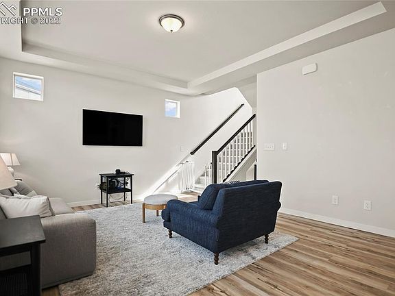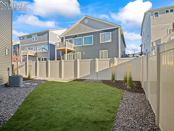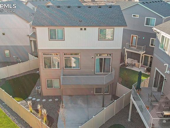 Welcome to your new home! This 3 bed, 3 bath beauty is perfect for anyone. You'll love the convenience of being close to shopping, schools and parks. The backyard is perfect for kids or pets - it's fenced in and xeriscaped, so you can enjoy without having to worry about upkeep. The eat-in kitchen features stainless steel appliances and quartz countertops - perfect for hosting gatherings of all sizes. Plus, there's plenty of extra living space in the finished basement, with walk-out access to the backyard. Don't miss out on this one! This lot is located close to the Dublin for easy access to & from the neighborhood and is only a couple of blocks away from the Ranch House. This neighborhood features include an award winning school-Banning Lewis Ranch Academy, over 75 acres of parks and trails, two pools, exercise gym, pickleball courts, tennis courts and recreation center.