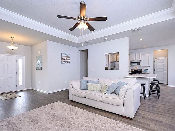 Welcome Home!!! Wonderful three bedrooms Fairhope home in desirable Greytorne Estates! Move in Ready with all the bells and whistles!! Open living room with trey ceilings!! Spacious kitchen eat in kitchen with counter top seating and stainless steel appliance! Formal dining room!! Master suite with trey ceiling! Master bathroom features double vanity! NO CARPET throughout the home!! Walk in closets in bedrooms!! Perfect outdoor space for entertaining!! Covered patio with mosquito curtains and wall hun TV that conveys with home! Back yard is very spacious and fully fenced!! Schedule your showing today! This one won't last!!