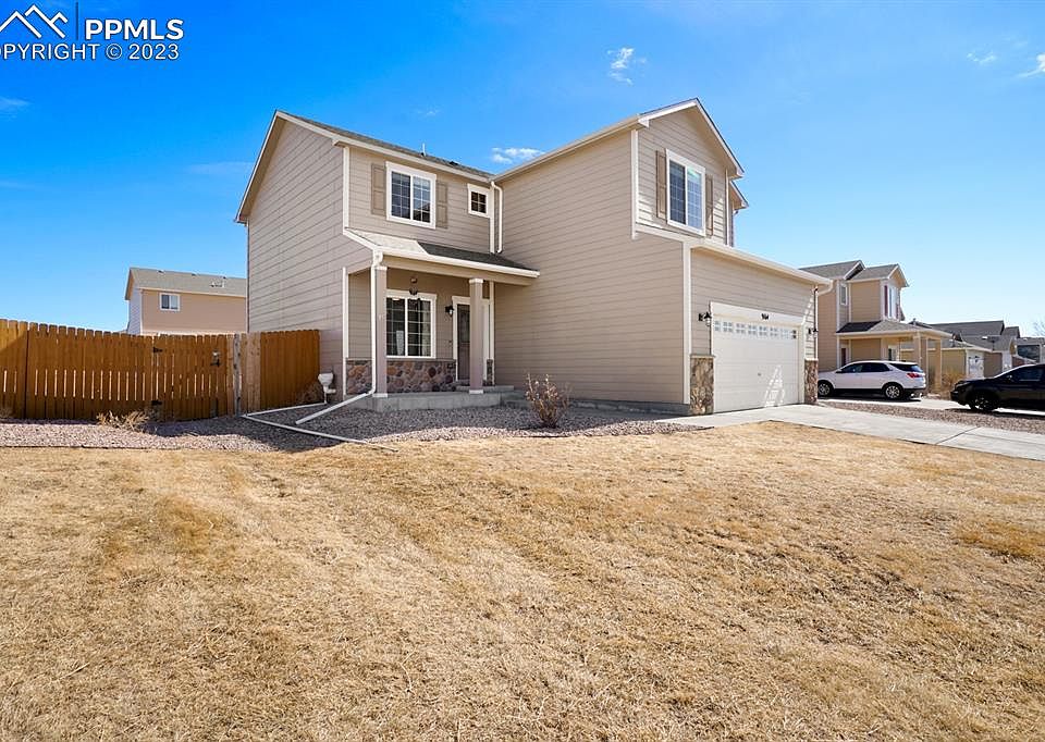 SEE AGENT REMARKS: You won’t want to miss the opportunity to own this corner lot, 2-story, home with an unfinished basement which is ready for your vision in a tidy, southeast Colorado Springs, neighborhood known as Cuchares Ranch. Featuring a freshly painted main level with newer, easy-to-clean flooring and a kitchen space that has a laundry room with a door that separates it from the rest of the kitchen. There is also a roomy pantry with wire shelving, with room left over to store brooms, buckets, pet food, or large Sam's Club-type items. In one straight motion the kitchen welcomes an ample living and dining space, with a large picture window that looks out to the backyard. Upon entering the front door, the living room is to the right; a staircase ahead, and to the right is a half-bath, followed by a bedroom. There is a spacious loft immediately off to the right of the stairs that which can be used as a second den, a study area, crafts or exercise room. To the left of the stairs is a short hallway with 2 bedrooms and a full bathroom. Directly east (behind the loft) is the Master Suite. The Master Suite has a very large walk-in closet that easily accommodates 2 people. The master bathroom includes a shower, two-sink vanity, and a brand new, boxed, 5-bulb vanity light bar, with a separate water closet. This is a corner lot with some views of the mountains. There is a neighborhood park, and easy-access to the Powers Corridor. Two-car garage; there is a large, unfinished basement. Basement has great potential to accommodate a recreation area on one side and a movie room or second den area on the other side. Backyard is fenced. Garage is heated. Samsung oven; washer and dryer; refrigerator; dishwasher. There is a 2nd refrigerator in the garage that is also included in the sales price. A great opportunity for home ownership. Stop by today and see for yourself. Brand new, still boxed towel holder, paper product holder for Buyer to install at own discretion.