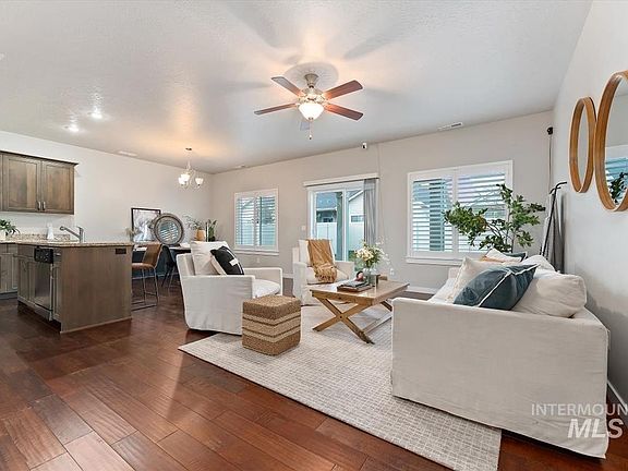 Step into luxury, low-maintenance living offering the perfect blend of style, comfort & convenience! Enjoy beautiful upgrades such as granite countertops and upgraded LVP flooring which adds warmth & sophistication to an open concept living, dining & kitchen. Surrounded by an abundance of cabinetry you'll, enjoy cooking on your gas range, along with the sleek & modern aesthetic of the stainless-steel appliance package. Comfort is paramount in this home, w/ dual zone heating/cooling, generous sized bedrooms, walk-in closet & upstairs laundry room. Enjoy the ease of living in Southcreek- take a refreshing dip in the community pool, perfect for an afternoon retreat on those hot summer days! Conveniently located minutes away from Costco, freeway access & downtown Boise. This gorgeous home offers the best of both worlds—aesthetically pleasing upgrades & a convenient location. Don't miss the low maintenance lifestyle w/ HOA amenities: front/backyard mowing, fall irrigation blow out & spring startup!