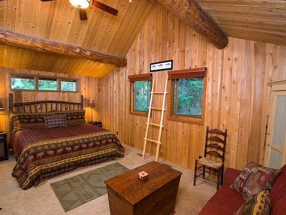 Classic Log Cabin in the woods. Iconic in every aspect. Large wrap around deck. Sleeping loft with queen bed. Huge river rock fireplace. Deeded access to boat launch.