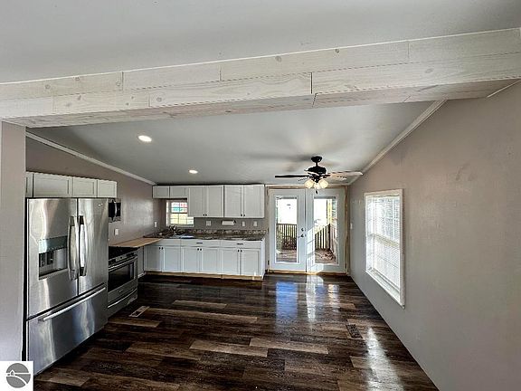 Close to Gladwin, Houghton Lake, West Branch, and Harrison! Cute 3 bedroom, 1 bath manufactured home. This home has many updates, including new flooring throughout, kitchen cabinets, and newer stainless steel refrigerator and stove. Newer french doors lead to the back porch for grilling, relaxing, or enjoying conversation. Huge bathroom/laundry combination offer ample storage. Back door leads to laundry which could be uaed as a mud room. Good size back yard and workshop/shed. Newer metal roof (approximately 10 Years old). Close to snowmobile/UTV trails, lakes, and state land.