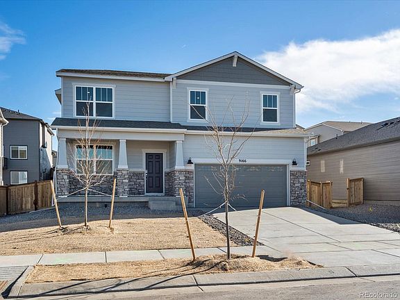 Brand new, energy-efficient home available now! This open-concept two-story home create an inviting space for any occasion. The upstairs loft is perfect for kids to do their homework or a place to watch a movie before bed. Laundry is conveniently located on the upper level making chores a breeze. The interior boasts a great room and a beautiful design package, highlighted by elegant white staggered cabinets, modern backsplash and pristine white ice quartz countertops. Upgraded luxury vinyl plank flooring adds a touch of sophistication, complementing a host of other thoughtful smart-home touches and energy efficient upgrades throughout. Centrally located, Buffalo Highlands is a beautiful community in Commerce City. This new phase of single-family homes features five open-concept floorplans to choose from in our LiVE.NOW packages. Nearby the Rocky Mountain Arsenal, with extensive trails and just a short commute to Downtown Denver and DIA. We also build each home with innovative, energy-efficient features that cut down on utility bills so you can afford to do more living.* Each of our homes is built with innovative, energy-efficient features designed to help you enjoy more savings, better health, real comfort and peace of mind.