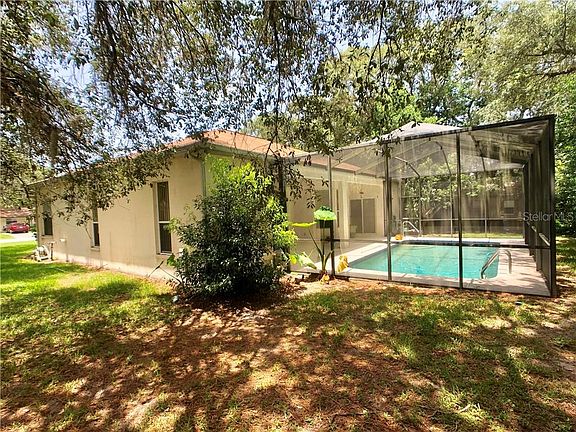 ONE OWNER-Custom Built pool home on oversized 1/3 acre treed lot awaits new owner to restore and decorate it back to it's original elegance. It features expansive great room with high 10 ft ceilings, 8ft sliding glass doors, decorative pillars and plant shelves. Huge 20 ft Master suite with slider to pool lanai, walk in closet , garden tub, separate shower, and vanity with make up area. Large Kitchen with pantry closet, breakfast bar , and breakfast nook overlooking pool. Second bedroom features slider onto pool lanai, Sparkling and refreshing screened in pool with 30 ft covered lanai. The oversized 3 car garage was custom built 4 ft longer then standard to accommodate a boat , has 2 fans , and an A/C duct. The roof is only 3 years old and the A/C condenser only 2 months. All this surrounded by large landscaped and treed lot with additional 16 x 10 storage shed with a window a/c unit. This home is loaded with gorgeous custom features awaiting your vision and upgrades. Call today !