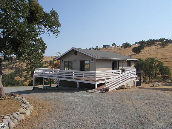 Panorama views of mountains and valley from this quiet and peaceful location. Perfect home for those seeking room for In-Law/Guest or rental. Main level consists of 3 bed, 2 baths, kitchen, dining and living room. Downstairs has 480 sf studio/apartment with kitchen/living room with1 bedroom and 1 bath. Studio has its own separate entry. Shared laundry plus extra storage area in downstairs. Very well maintained home with tile and laminate flooring through out. All on 3.3 acres. Ample parking with circular driveway allows room for boats, RV, etc. Perfect for full-time or part-time living! Only minutes to Lake Don Pedro & Lake McClure! This is a delightful home, so peaceful with abundance of birds and wildlife to enjoy!
