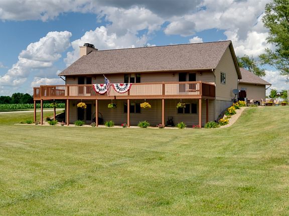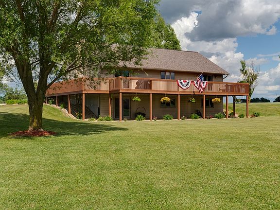 Sit out on the deck which wraps around all three sides of the home and watch the horses and the sunset, or sit on the walk out patio and gaze over almost 10 acres of lush yard and the trees of Morraine View State Park across the street.This country estate has cathedral ceilings, crown moldings, 2 fireplaces and 2 family rooms. The huge main floor master has walk in closet, private bath with heated tile floor and french doors to the deck. Kitchen has ceramic tile floor, Granite tops, tile back splash and french doors to the deck. Main floor laundry has laundry sink and storage cabinets. Open dining room and family room with fireplace and cathedral ceilings.Full finished basement with family room with fireplace, 2 large bedrooms, an office/ bonus room, full bath and storage room. Large 3 car heated garage. Lots of acreage with 10 stall horse barn (90x60) with tack room (15x10). Entrance to 15 miles of horse trails right across the street! Zoned for boarding horses, or private farm with hiking trails,camping, boating, fishing, hunting or snowmobiling. Tri-Valley schools! Top quality construction with 6 inch walls and extra insulation. Newer doors and trim in 2017, roof in 2010 (50 yr warranty) HVAC new in 2018. All appliances remain including washer and dryer. Lighted lamp posts light up the long drive way entry to this amazing property!
