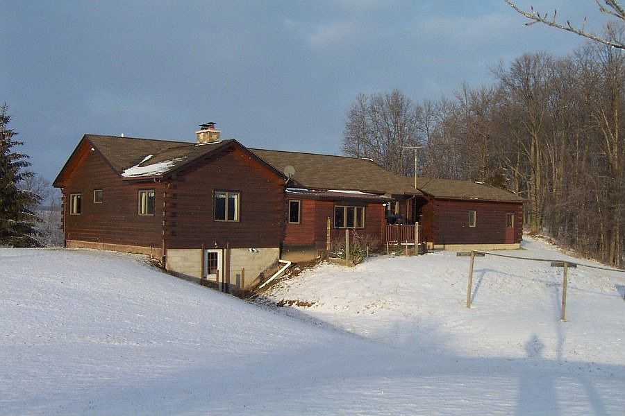 Exceptional setting, Log Home & horse barn on 50 wooded acres with public water, large creek running thru property. Home has numerous updates, great room with floor to ceiling fireplace, new furnace with central air, 2 car attached garage, private setting! Rare find! Won't last!