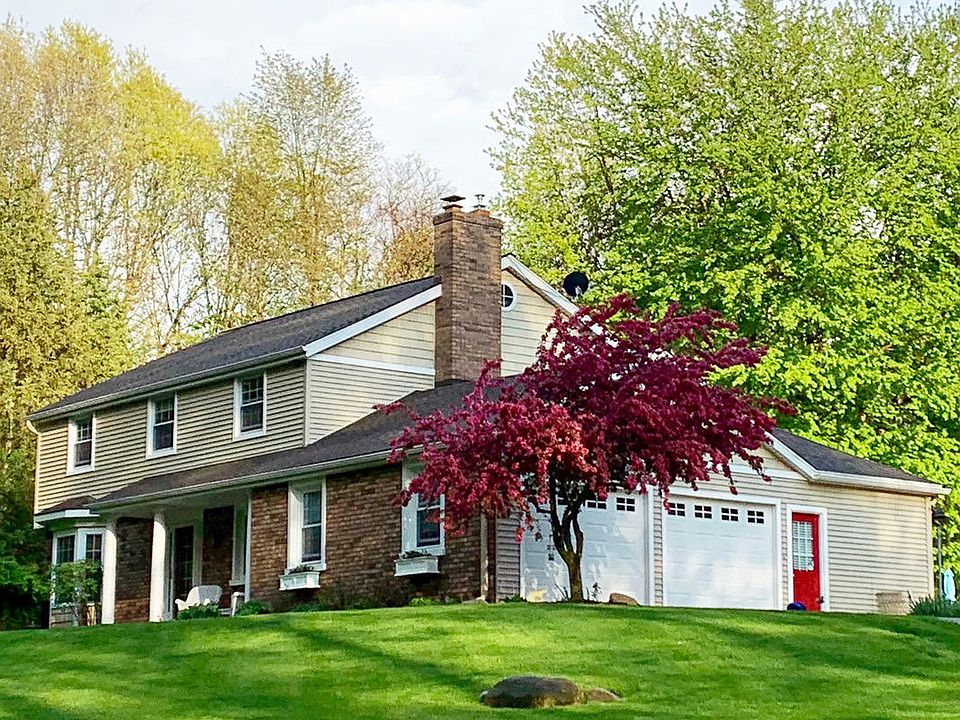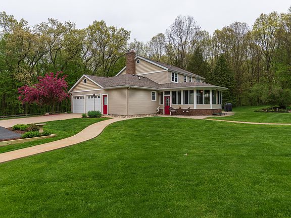 Welcome to this rolling, designated "Natural Beauty Road" in Texas Township. This is a one-of-a kind- property, on 11.5 heavily wooded acres, with approx 1.5 acres fenced for animals. There are 3 structures to describe; the main home, traditional center-hall plan with 4 bedrooms upstairs, featuring a spacious custom closet in the master suite, and an updated full bath. The back porch was completed as a 4 season room with a Franklin Gas Stove, the kitchen is updated and features granite counters, stainless appliances and is open to the family room with gas-log fireplace. A convenient main floor laundry and full bath are accessed easily from the back entry, which leads to the inground pool. Friends might linger too long at the charming guesthouse, which features a bedroom, full bath,