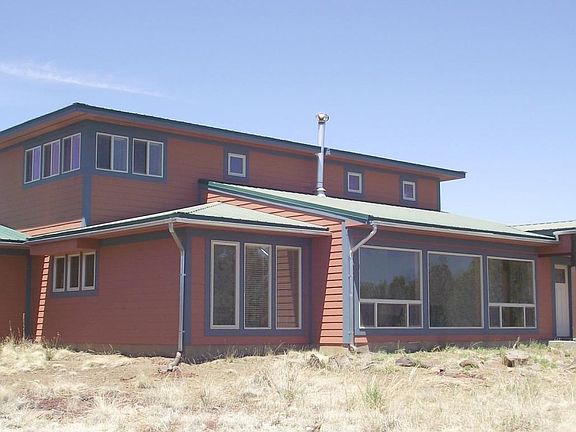 This home is the result of years of planning by an owner/builder/architect who built this 2968 sq ft home on 10 acres. The home features two-car garage, gigantic picture windows that provide passive solar heating, fantastic views of mountains to the south. All 3 bedrooms and 2-baths are on ground floor level. Each bedroom has a large walk-in closet. The master bedroom closet is larger than many bedrooms. The kitchen has lots of counter space, custom made hard wood cabinets and walk-in pantry. Upstairs is a expansive 700 sq ft den or family room which is great for anything that needs a lot of room. The 10-acres is fenced, gated and animals are welcome. The heavily treed parcel is private & home is barely visible from the gate at the end of cul-de-sac. Owner occupies shown by appointment.