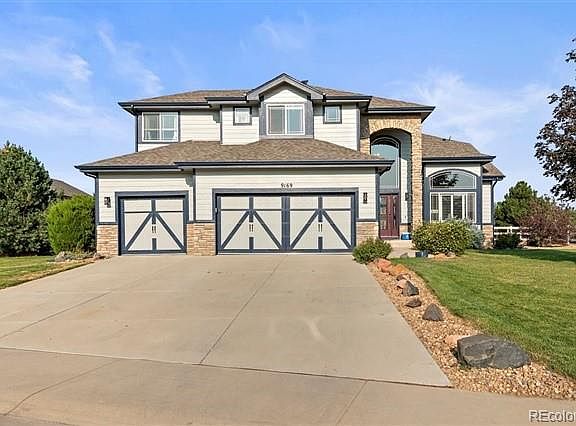 Wow! This amazing semi custom house is ready for you to call it home. The home sits on a half acre. Walk into a bright entry and hand scraped wood floors. Lovely sitting room and formal dining. The kitchen opens to a large living room with a custom fireplace, enjoy the leathered granite counters large eat in kitchen, ample cabinet space and a large pantry. A large office, powder room and laundry room finish the main floor. Upstairs there is 2 bedrooms that share a jack and jill style bathroom, and a 2nd master bedroom. The master bedroom is a huge get away with a luxurious 5 piece bath a large walk in closet with custom shelving, you will fall in love with the deck off the master and the views of Longs Peak. The basement is a huge space with a custom built bar,a bedroom, 2 rec rooms, & a full bath. The amazing lot with so much space and amazing mountain views to enjoy by the gas firepit. This is a can't miss!