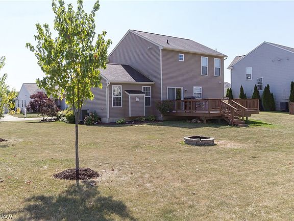 Beautiful Colonial located in highly desirable neighborhood in North Canton! You will love the open floor plan on the first floor offering vaulted Great Room with floor to ceiling stone fireplace and wide plank laminated wood flooring that extends through the beautiful kitchen, dinette, first floor laundry and half bath. Lots of natural lighting flow through the first floor with over sized windows and sliding door off dinette. Enjoy outdoor entertaining with spacious deck and large back yard. The second floor offers beautiful Master bedroom with wide plank laminated wood flooring and master bath, two more spacious bedrooms and another full bath. Nicely finished additional 260 square feet of finished basement perfect for play room or man/woman cave. This lovely community offers outdoor activities such as walking trials and a catch and release pond.